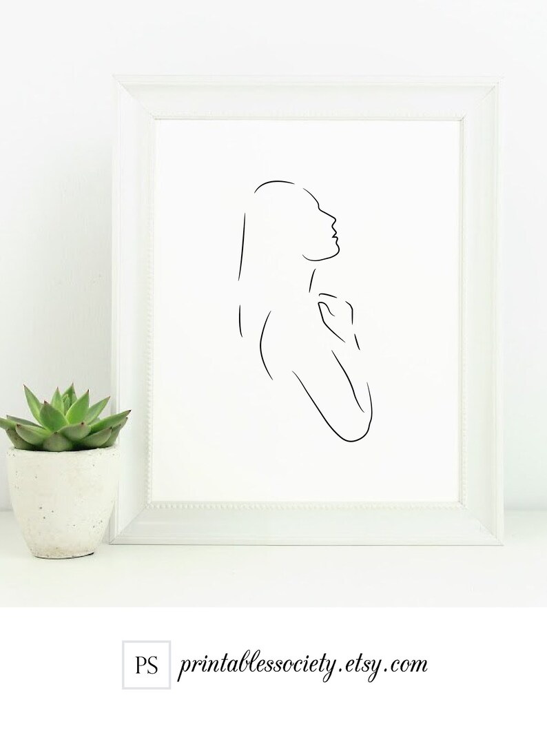 Woman Printable Line Art Female Side Profile Art Print Simple Etsy